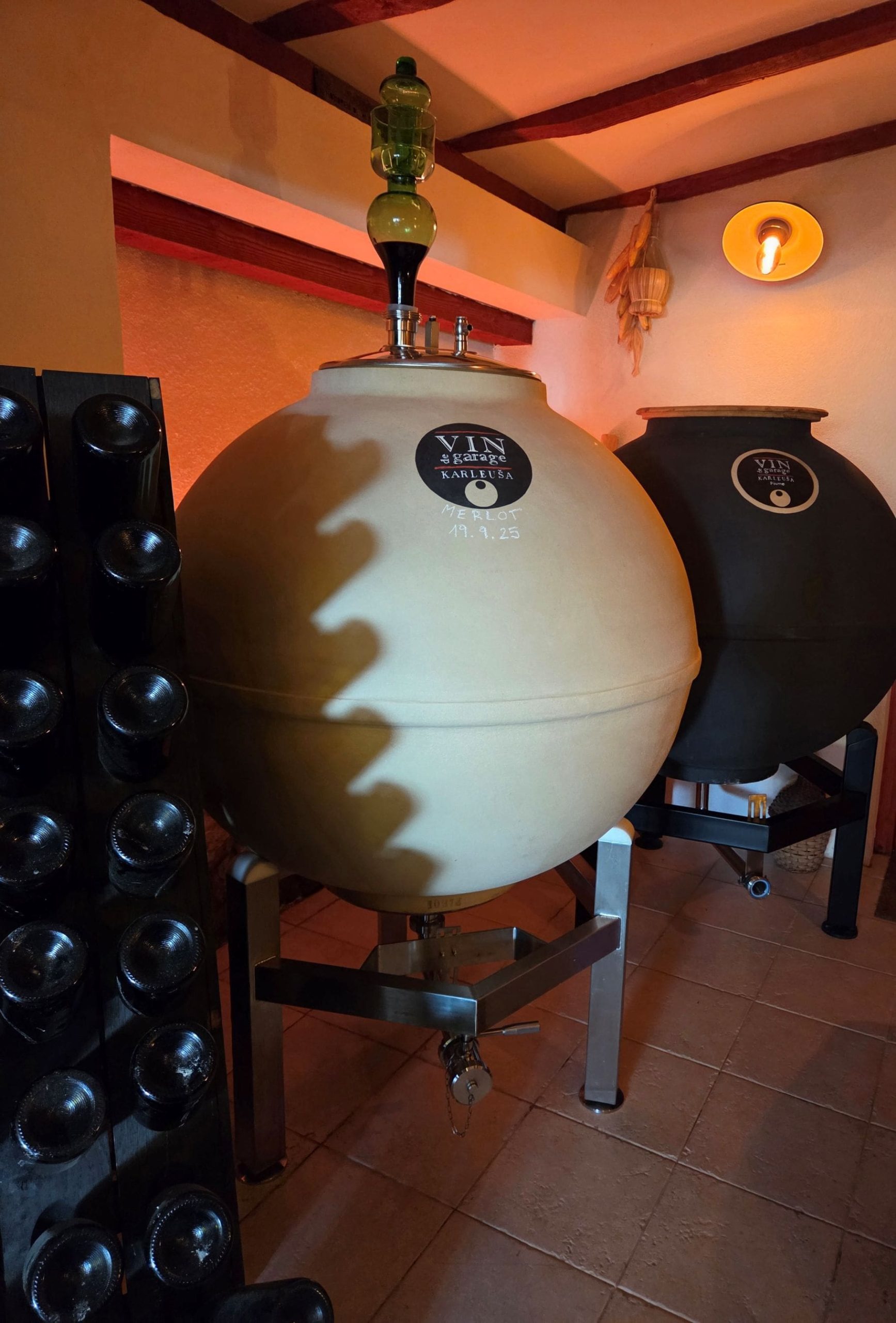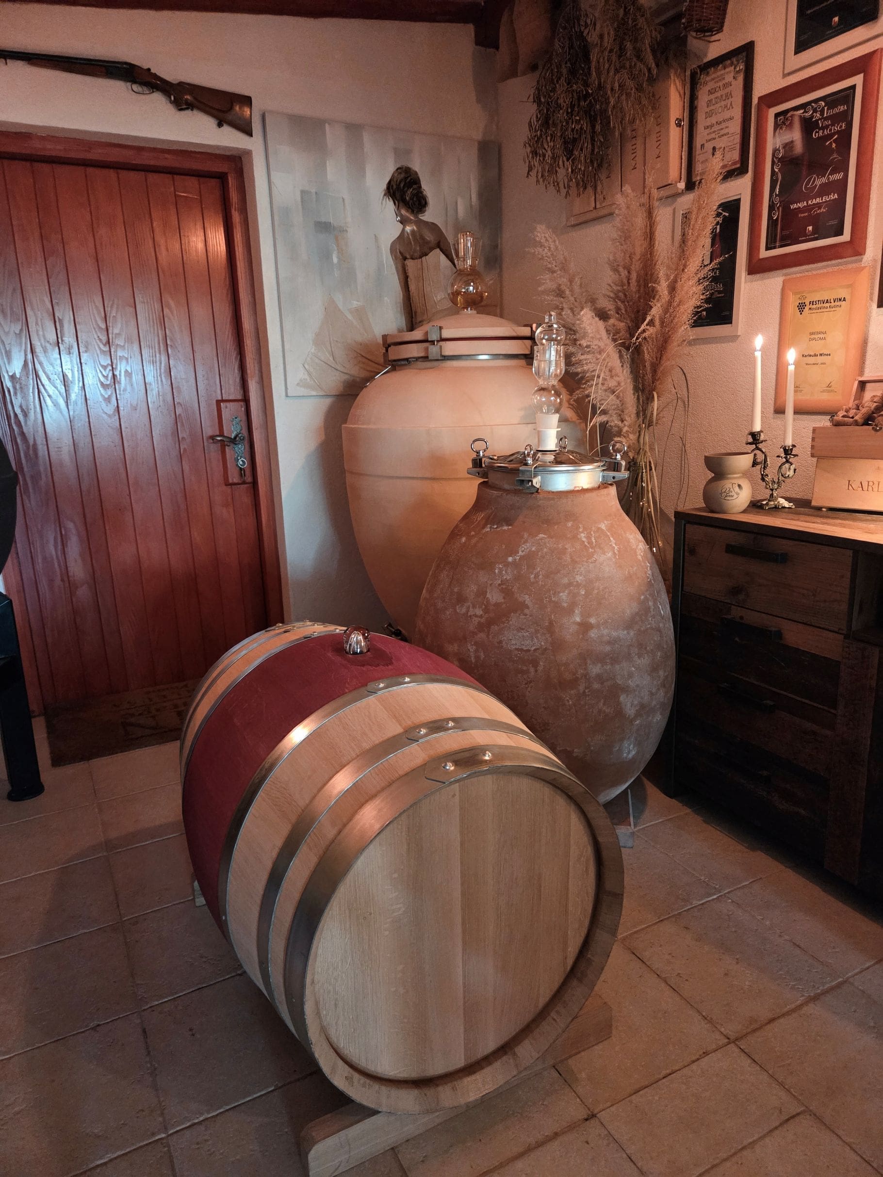 Naše amfore su Sirio iz Toskane, kugla i globus je od Clayvera iz Italije i tzv.jaja su također iz Toskane od Artenove.  Kugle, globusi, tzv. jaja… Različiti oblici daju različite temperature, dinamiku i arome. U svijetu je to vrlo cijenjena tehnologija.