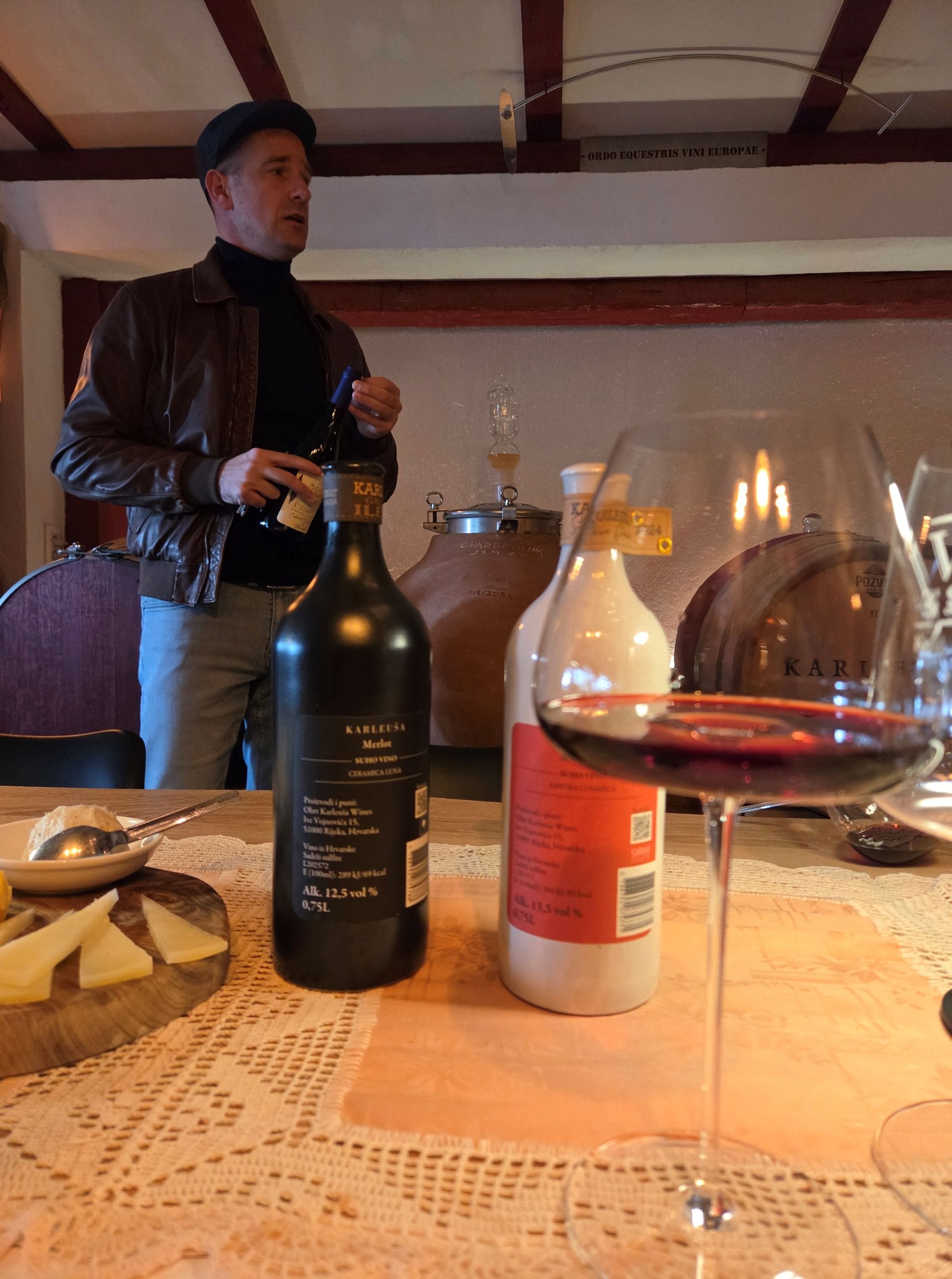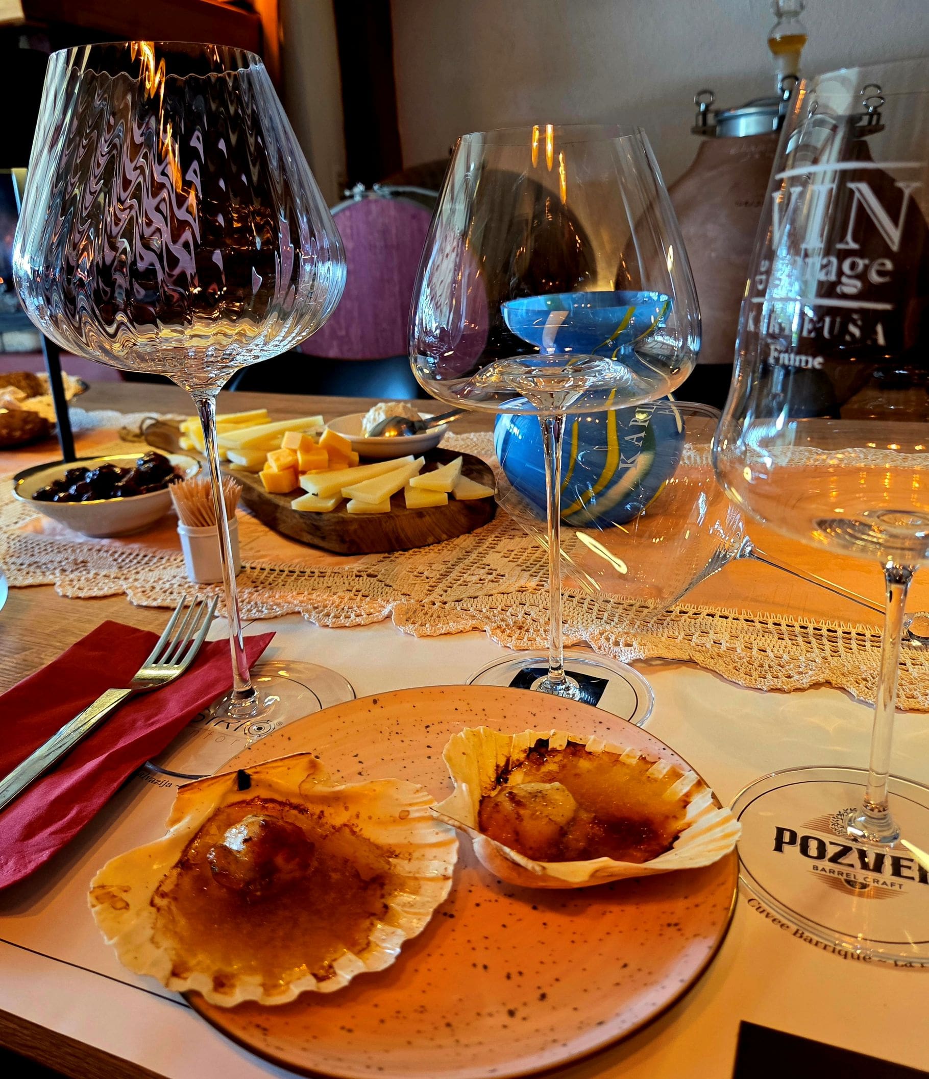 Tijekom našeg posjeta, supružnici Vanja i Ilenia Karleuša ugostili su nas s tolikom toplinom da smo se osjećali kao da smo došli u dom starih prijatelja. Stol prepun domaćih sireva, školjaka i pljukanaca, pažljivo sljubljenih s njihovim vinima, pokazao je koliko im je stalo da se svaki gost osjeti dobrodošlo. Zaista – tretman kao za kraljeve.